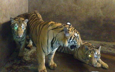 4 cá thể hổ được nuôi trong căn phòng chưa đầy 15m2, một điều khó tưởng tượng.