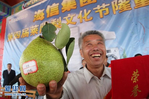 Trong cuộc thi lê lần thứ 4 được diễn ra ngày 2/10 ở thành phố Lai Dương, tỉnh Sơn Đông, Trung Quốc, hội đồng giám khảo đă thẩm định 43 quả lê được chọn thi dựa trên các tiêu chí đánh giá như cân nặng, hàm lượng đường, chất lượng, mẫu mă.