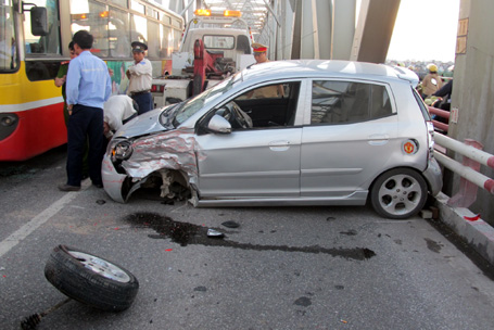 Chỉ đến khi có mặt CSGT và lực lượng bảo vệ cầu, chiếc xe buýt mới được đưa khỏi hiện trường, giải phóng một phần cầu từ phía Nam sang. Do hiện trường chiếc xe Kia xoay ngang, bánh trước bị văng ra nên phải mất rất nhiều thời gian, xe cứu hộ mới cẩu được chiếc xe ra khỏi khu vực tai nạn.