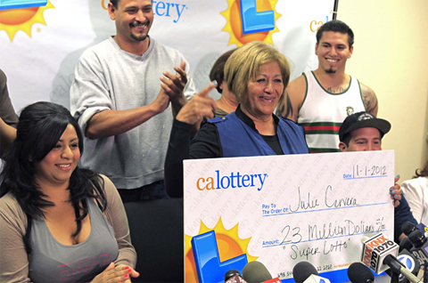 Chỉ còn 25 ngày trước khi tấm vé số mất giá trị, bà Juilie Cervera, đến từ Victorville, California mới phát hiện ra mình để quên tấm vé trị giá 23 triệu USD trong ôtô suốt gần nửa năm trời. Trong suốt quãng thời gian đó, người phụ nữ góa 69 tuổi này đã phải chật vật để chi trả 600 USD tiền điện, nuôi gia đình và cố giữ cho dịch vụ truyền hình cáp không bị cắt.