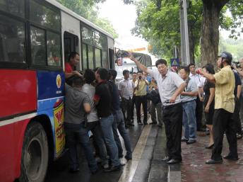 Người biểu tình chống Trung Quốc tại Hà Nội bị bắt lên xe bus ngày 21/8/2011/REUTERS/Tu Quang