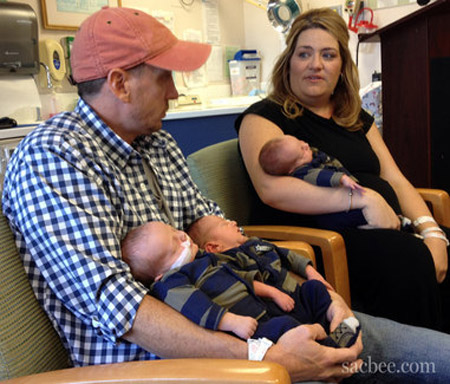 CBS San Francisco đưa tin 3 bé trai chào đời hôm 8/11 vừa qua tai bệnh viện Sutter Memorial, thành phố Sacramento, bang California. "Gia đình tôi rất mừng. Khi mang thai tôi thường xuyên lo lắng và sợ hãi", chị Brittany Deen, mẹ của ba bé, tân sự.