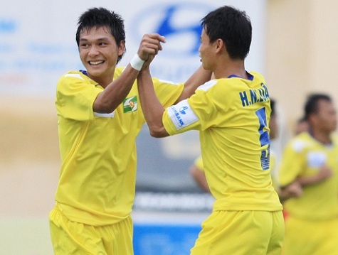 Hồng Việt (bên trái) trong màu áo Sông Lam Nghệ An.