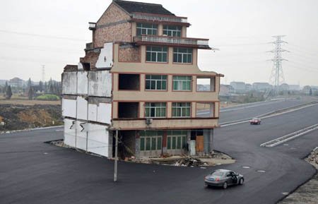 Một gia đình tới từ ngôi làng Xiazhangyang vẫn kiên quyết sống trong tòa nhà nằm ngay giữa lòng đường.