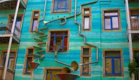 Ngôi nhà hát tọa lạc ở Neustadt Kunsthofpassage, Dresden - Đức, là một phần của dự án nghệ thuật. Mỗi khi trời mưa, toàn bộ tòa nhà trở thành một công cụ phát nhạc.