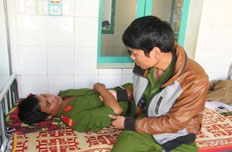 Sau đó, trung tá Bình và trung sĩ Sỹ đã được đưa đi cấp cứu tại BV đa khoa huyện Hướng Hóa với rất nhiều vết thương khá nghiêm trọng ở đầu, ngực, tay.