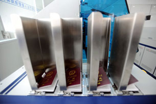 Những tấm hộ chiếu điện tử Trung Quốc đang được in với bản đồ hình "lưỡi bò" bên trong hộ chiếu. Ảnh chụp hôm 08/5/2012/AFP photo