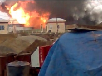 Sau tiếng nổ, lửa bao trùm nhà xưởng của một nhà máy trong KCN. Hàng ngh́n công nhân náo loạn t́m cách chạy ra ngoài tránh xa khu vực vừa phát nổ.