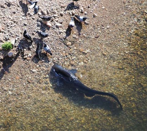 Choáng với cảnh cá trê lao lên bờ săn bồ câu