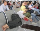 Nhiều hành khách chờ lấy vé mệt mỏi, nằm ngủ luôn tại nhà ga