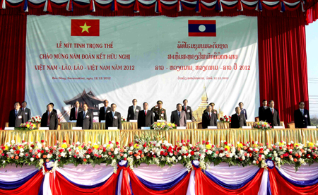 Đồng chí Lê Hồng Anh, Ủy viên Bộ Chính trị, Thường trực Ban bí thư Trung ương Đảng Cộng sản Việt Nam, Trưởng ban chỉ đạo Quốc gia “Năm đoàn kết hữu nghị Việt Nam – Lào” và đồng chí Bun-nhăng Vô-la-chít, Uỷ viên Bộ Chính trị, Thường trực Ban bí thư Trung ương Đảng Nhân dân cách mạng Lào, Phó chủ tịch nước, Trưởng ban Chỉ đạo Quốc gia “Năm đoàn kết hữu nghị Lào – Việt Nam” đồng chủ tŕ Lễ mít tinh và các hoạt động tiêu biểu khác.