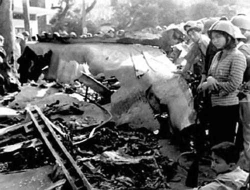 Xác B-52 rơi trên đường phố Hà Nội.