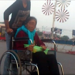 Cụ bà giả vờ bị tàn tật ngồi trên chiếc xe lăn
