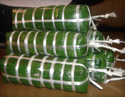 Các công đoạn chuẩn bị đă sẵn sàng, tôi bắt tay vào gói bánh. Ảnh do độc giả cung cấp.