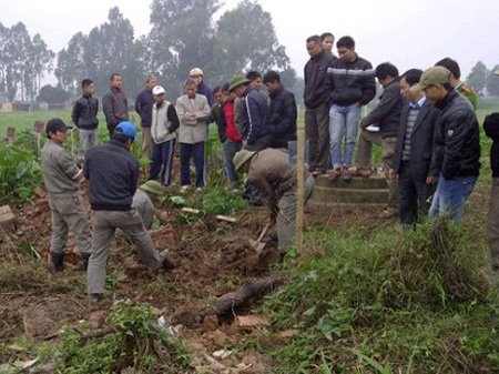 Vào khoảng 8 giờ 30 sáng nay (26- 12), một số người dân ở làng Tứ Kỳ ((phường Hoàng Liệt, quận Hoàng Mai, Hà Nội) khi phát hiện khoảng chục người đang đào bới khu nghĩa trang trước đây của làng đã gọi dân làng ra xem xét.