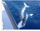 (GDVN) - Con cá mập lớn đã nhảy lên mặt nước đớp con cá mập trắng bé hơn đang được kéo lên thuyền của ngư dân.