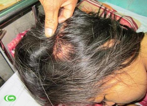 Vết thương tại vùng sau gáy chị Sen được gia đình khẳng định là do dùi cui đập vào là một vết dài sưng to khá rõ.