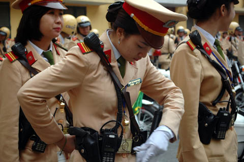 Lực lượng hùng hậu Nữ CSGT chờ hiệu lệnh...xuống đường!
