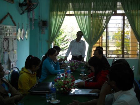 | Ban giám hiệu Trường THCS Lý Tự Trọng họp quyết định cho em Vy đi học lại vào chiều 14/1. |