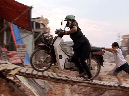 | Người dân vất vả đẩy xe máy về nhà trên quốc lộ 3 đoạn các đơn vị đang thi công dang dở. | Sẽ công bố công khai năng lực của đơn vị tham gia dự án