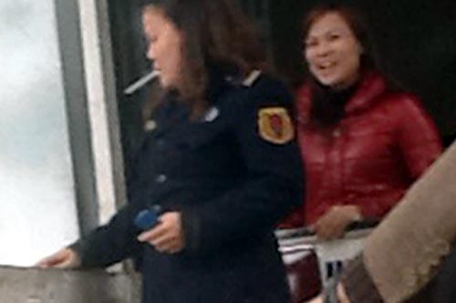 Nữ bảo vệ 'phì phèo' thuốc lá trong BV Bạch Mai