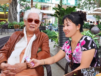 Nhạc sĩ Phạm Duy (trái)tại một sự kiện diễn ra đầu năm 2012. Ảnh: T.Toan.