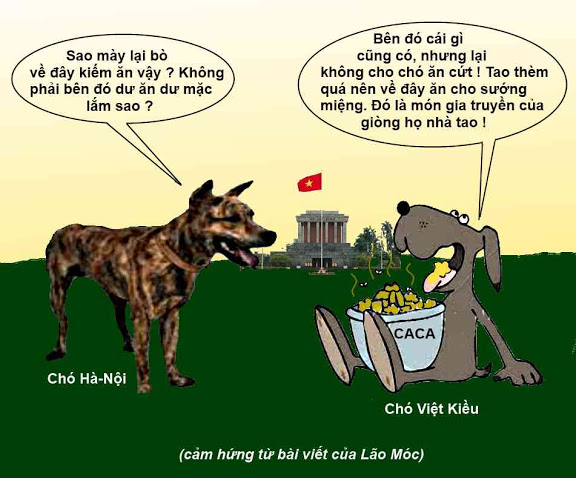 Còn những con Chó Hải Ngoại hồi hương thì bị những con Chó bên VN hỏi rằng: