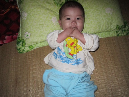 Đó là gia cảnh hết sức nghèo khổ của của anh Nguyễn Văn Tiệng (SN 1986) và chị Lê Thị Nguyệt (SN 1991) có đứa con gái là Nguyễn Thị Hải Yến ( 7 tháng tuổi). Cháu mới chỉ biết lật đã mang trong mình căn bệnh tim quái ác nên thân hình gầy gò, tay chân và môi của bé tím ngắt.