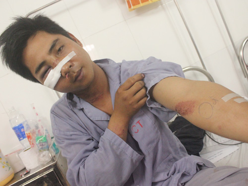 Anh Nghiêm Duy Hoàng đang điều trị tại bệnh viện với nhiều vết thương trên người
