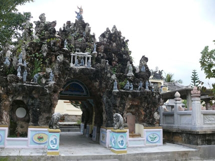 Đã qua gần một thế kỷ nhưng khu lăng mộ này vẫn còn khá nguyên vẹn và thực sự là một công trình kiến trúc nghệ thuật độc đáo. Hai bên hòn non bộ sừng sững như quả núi tự nhiên, phong cách ghép hòn non bộ rất độc đáo, khác hẳn những hòn non bộ truyền thống. Trong lòng mỗi hòn đều có ngóc ngách người ta có thể chui ra vào. Bên trên có những bức tượng nhỏ mô phỏng cảnh người thiền, ngâm thơ, câu cá tạo một không gian cảnh tựa bồng lai.