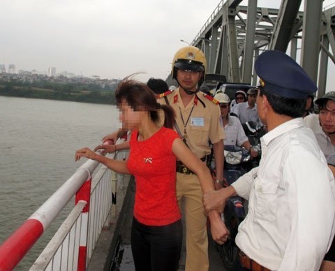 CSGT Hà Nội cứu người phụ nữ định nhảy cầu