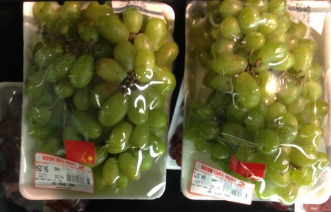 Nho bán tại siêu thị Big C the Garden (Mỹ Đình, Hà Nội) bên ngoài nhãn in made in Vietnam, nhưng bên trong lại dán cờ Trung Quốc