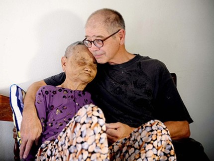 Cựu binh Jim không nén được xúc động bên Mẹ Việt Nam Anh hùng Nguyễn Thị Nhứt.