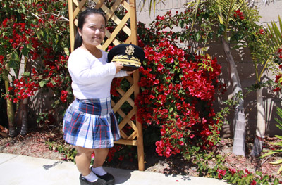 Dược Sĩ Mai T. Nguyễn và chiếc nón, kỷ vật của ba cô. (Hình: Ngọc Lan/Người Việt)