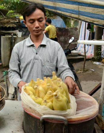 Chứng kiến một quy trình luộc ngô của chị Phạm Thị Lan tại xóm ngô khoai Đồng Bát mới thấy được người bán ngô cẩn thận như thế nào. Chị Lan chọn những bắp ngô tươi, non nhất, chặt hết râu ria, rửa sạch rồi đợi nước thật sôi đổ ngô vào luộc và đúng 15 phút sau vớt ra. Như vậy ngô sẽ dẻo đều và không bị nhừ. Nếu muốn ngô thơm và ngọt có thể cho thêm các gốc mía. Mấy tháng nay làm ăn không có lãi, cả gia đình chị Lan gồm ba thế hệ đi bán ngô vẫn nổi lửa luộc ngô vào mỗi sáng mặc dù nhiều người trong xóm đã bỏ nghề và chuyển sang bán xúc xích, kem bông, bánh mì... “Cả gia đình tôi sáu người theo nghề bán ngô hơn chục năm nay. Chúng tôi sẽ vẫn bán tới khi nào còn có thể vì tôi không muốn ngô phải chịu tiếng xấu mãi” - chị Lan khẳng định.