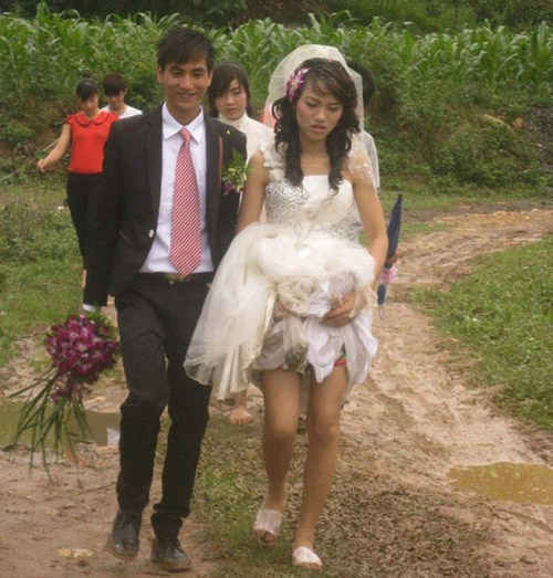 "Sốt" mạng bức ảnh cô dâu Việt đi dép tổ ong