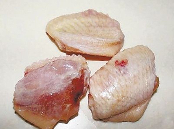 cánh gà giá rẻ khi luộc mãi không chín, ninh cả tiếng không nhừ. Loại cánh gà này được đóng trong bao nilon giá 14 – 18 nhân dân tệ/kg (46.200 – 59.400 đồng - bán lẻ và bán cả túi).