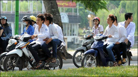Từ nhiều năm nay, do đời sống nâng cao, nhiều gia đình khá giả đã mua xe máy cho con đi học dù chúng chưa đủ tuổi điều khiển khiến việc học sinh vi vu xe máy tới trường trở thành vấn nạn khó giải.