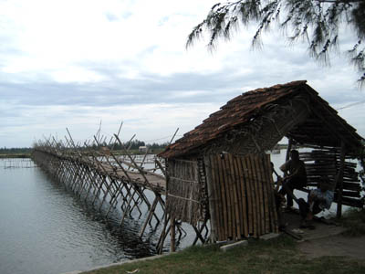 Cầu tre bắc qua sông Trường Giang ở Duy Xuyên, Quảng Nam. (Hình: Phi Khanh/Người Việt)