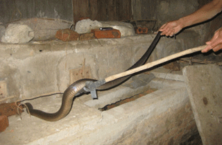 | "Đầu nậu" T. bắt từ trong chuồng nhà mình ra một con rắn hổ chúa. Theo Lời T. thì khu nuôi rắn của anh ta chỉ toàn nuôi loại này vì cho thu nhập cao. |