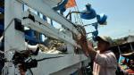 - Ngày 24/5, chiếc tàu cá QNg 90917 vẫn còn nằm nghiêng tơi tả trên cảng Sa Cần (xã Bình Thạnh, huyện Bình Sơn, tỉnh Quảng Ngãi) sau khi bị tàu sắt Trung Quốc đâm đến 3 lần liên tiếp trên đường từ biển Hoàng Sa trở về. (Ảnh: LĐ, TTO)