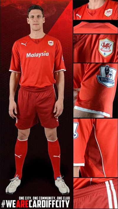 Quá sung sướng với việc lên hạng, Cardiff đã chọn mẫu áo đấu nhìn trông khá... trẻ con, với chiếc cổ có cả kiểu tim và tròn. Áo và tất đỏ tươi, quần đỏ đậm khiến cho trang phục của đội bóng được sở hữu bởi ông chủ người Malaysia, Vincent Tan trông khá nhàm chán. Người hâm mộ Cardiff còn bực tức hơn nữa, bởi Tan đã bỏ đi màu xanh truyền thống của CLB để thay thế bằng màu đỏ.