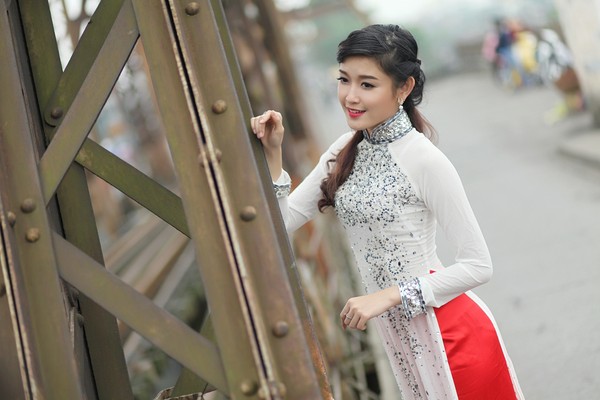 Girl xinh Huyền My thả dáng trên cầu Long Biên