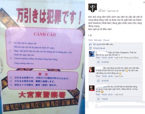 Liên quan đến bức ảnh biển cảnh báo bằng tiếng Việt được anh Đỗ Công Trọng chụp lại trong một siêu thị tại thành phố Saitama (Nhật Bản) đang gây xôn xao cộng đồng mạng, trao đổi với PV, anh Nguyễn Đăng Tuệ, người từng là Trưởng ban tổ chức chương trình Day VietNam 2011 tại Nhật Bản cho biết, đây là lần đầu anh gặp một biển cảnh báo bằng tiếng Việt có nội dung như trên tại Nhật.