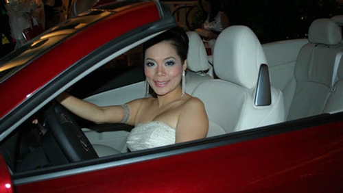 Mỹ Lệ tạo dáng bên chiếc xe mui trần mà cô tiết lộ là quà sinh nhật của ông xă và trong căn nhà rộng 1.000m2.
