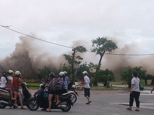 “Hồn nhiên“ dẫn con nhỏ ra biển xem... sóng bão