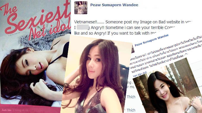 Mới đây, Peaw Sumaporn Wandee sinh năm 1991, đang sống ở Bangkok (Thái Lan), là người dẫn chương tŕnh của kênh truyền h́nh dành riêng cho nam giới Maxxi TV. đã thắng thắn lên Facebook của cô để chê những người Việt Nam thiếu văn hóa.