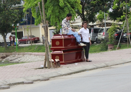Ngồi lên quan tài, quấn chăn tẩm xăng đòi tự tử giữa phố