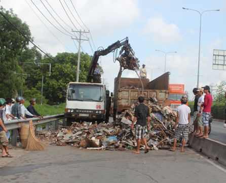 Phế liệu 'rào' quốc lộ 1A, giao thông kẹt cứng