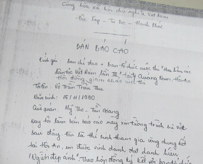 Bản báo cáo của thí sinh Triều Thu gửi chiều 2.7